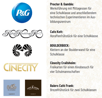 Immer die vier schnellsten Schüler und Schülerinnen einer Schulklasse ergeben eine Mannschaft, die nächsten vier Schüler und Schülerinnen die zweite Mannschaft, usw. Die ersten drei Gesamtsieger m/w je Klassenstufe werden zusätzlich geehrt. Für alle Mannschaften gibt es attraktive Preise aus einer Tombola zu gewinnen. Die Siegerehrung findet auf der Eventbühne statt.